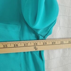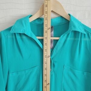 Moon Collection Womens Teal Green Long Sleeves Collared Sheer Blouse Top Size S
