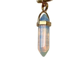 • Design: Gold-tone crescent moon with dangling gemstone accent