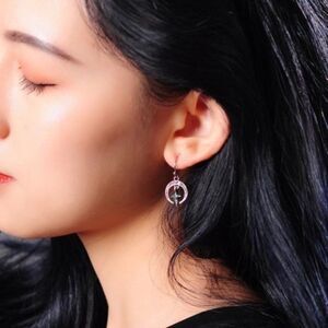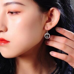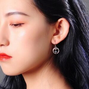 Moon Cross Blue & White Crystal Silver Vintage Hook Delicate Dangle Earrings