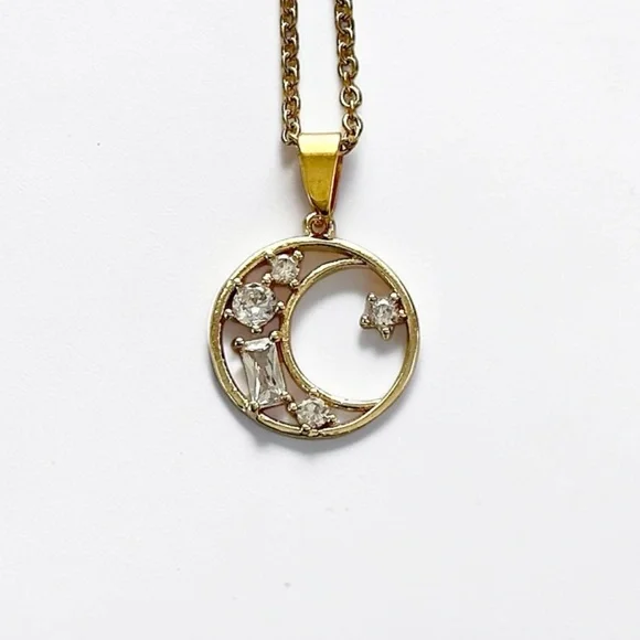 🆕 Moon Crystal Pendant Necklace-Stainless Steel