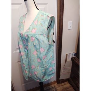 Moon Dance Sleeveless Blouse Green & Pink Women's Size 2XL