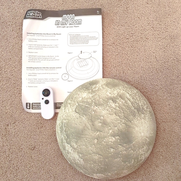 Moon In My Room with light up lunar phases by Uncle Milton. New without box. Comes with moon, remote, and instructions.