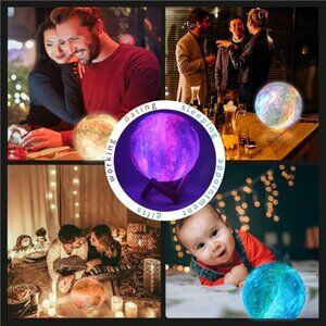 🧿【16 RGB Colors】The moon lamp with 16 different color for your choice,you can control the brightness level and the 16 colors available on the remote control,3 options for color transitions on the touch button.