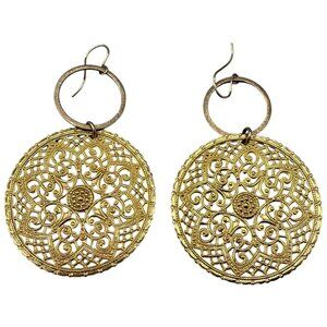 Moon & Lola Round Filigree Dangle Drop Rambaugh Earrings Gold Tone Bohemian
