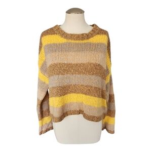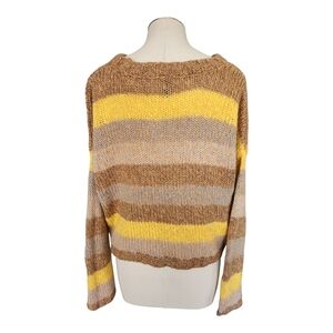 Moon + Madison Brown & Yellow Striped Crop Sweater Size L | Preppy Knit Long