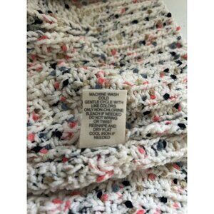 Comfortable and stylish chunky knit cardigan in a speckled pattern. Ideal for layering in cooler weather, providing both warmth and a chic appearance. Base color is Ivory, other colors speckled throughout are pink, black, blue and tan. In great condition.