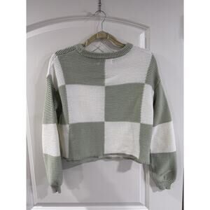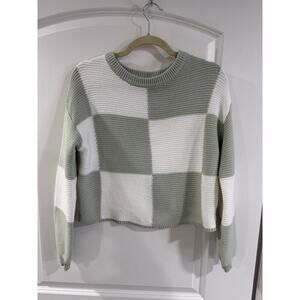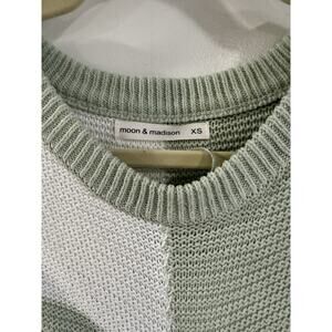 Moon & Madison Color Block Sweater XS White Sage Green Boxy Cropped Pullover