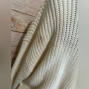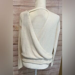 Moon & Madison Keyhole Back Wrap Top Ivory V-Neck Pullover Long Sleeve Medium. See pic as there is a light stain in the back which may come out in the wash. The sweater measures 27 inches pit to pit and 22 inches long. Smoke-free home.
