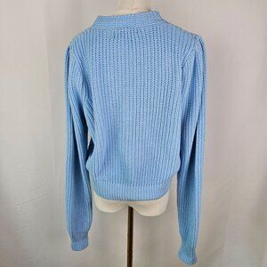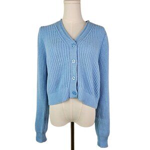Moon & Madison Light Blue Button-Up Knit Cropped Cardigan Sweater Large