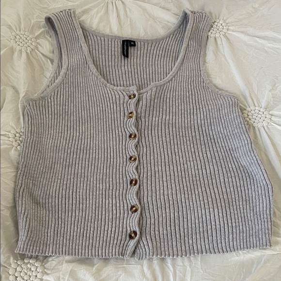 Moon & Madison Light Gray Ribbed Button-Front Tank Top