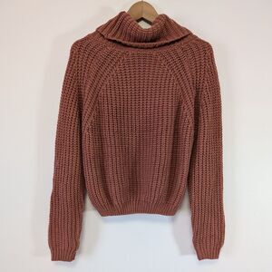 Moon & Madison Rib Knit Cowl Neck Rust Color Chunky Sweater