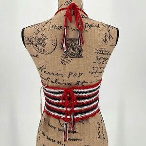 Moon & Madison Striped Crochet Halter Top Strapless Red White Blue Women Medium
