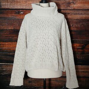 Moon & Madison Sweater M White Turtleneck Soft Chenille Knit Cropped