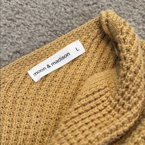 Embrace cozy elegance with this Moon & Madison V-neck sweater in a warm mustard hue. The distinctive twist detail at the center front adds a touch of sophistication to its classic design. Crafted with a medium-weight knit, this sweater offers both comfort and style for any casual occasion.