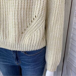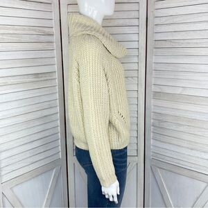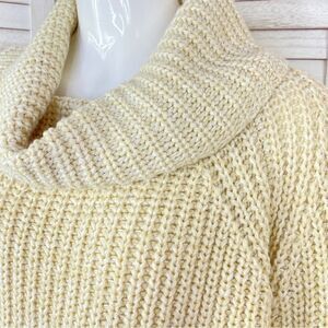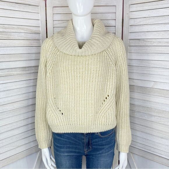 Moon & Madison Waffle Knit Cowl Neck Crop Sweater Cream Beige Small Long Sleeve