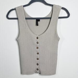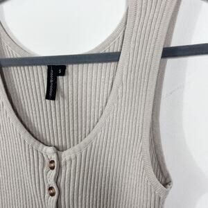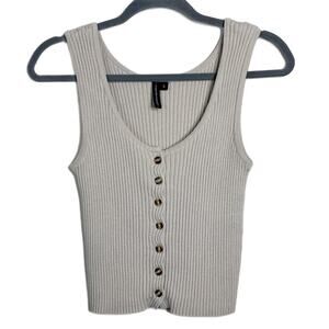 Moon & Madison Women's Knit Tank Top S Beige Button Front Sleeveless Scoop Neck