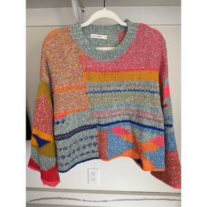 Moon & Madison Women's Multicolor Block Sweater Wool Blend Size XS Oversized