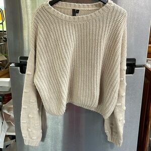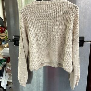 Moon&macdison women’s size large oatmeal, color sweater, large knit crop with long sleeves with special raised accents allover sleeves LAGENLOOK