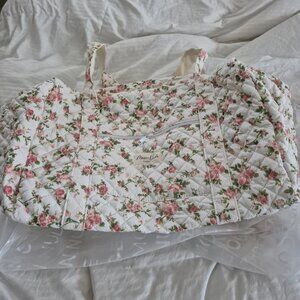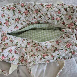The quilted exterior boasts a beautiful floral pattern, complemented by the classy green gingham interior.