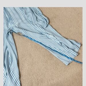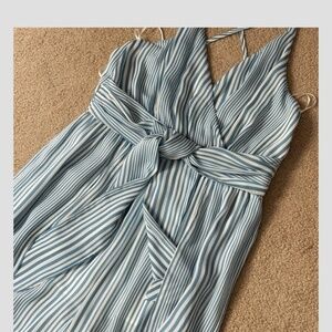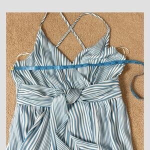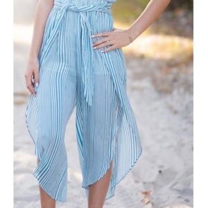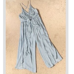 Style Tags: Moon River Jumpsuit Anthropologie Jumpsuit blue white stripe jumpsuit size large spaghetti straps open leg shorts underneath, culottes flyaway leg