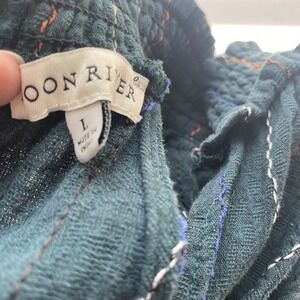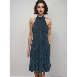Moon River Anthropologie Mini Dress Women Sz L Green Embroidered Halter Cotton