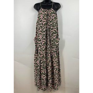 Moon River Anthropologie Women's Shoulder Tie Olive Branch Maxi Dress Size M