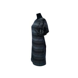 Moon River Black & Gray Striped Flutter Sleeve Dress M