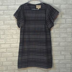 Moon River Black Grey Striped Ruffle Sleeve Shift Dress Size XS New with Tag