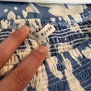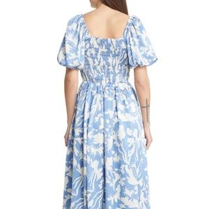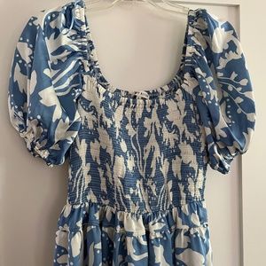 Moon River Blue Abstract Print Smocked Bodice Dress Size Small