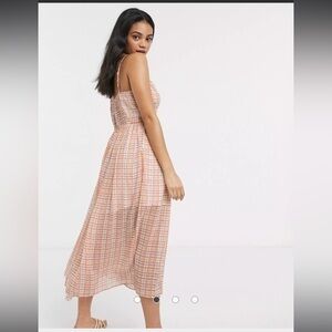 Retro Inspired Moon River Midi Dress Featuring A Square Neckline, Adjustable Spaghetti Straps. Finished With A Smocked Back Bodice For The Perfect Fit