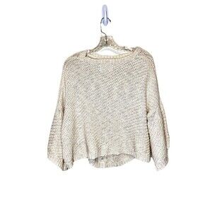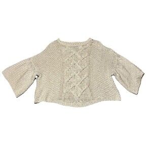 Moon River Cream Chunky Knit Dolman Flare Sleeve Relaxed Sweater Boho Women Small