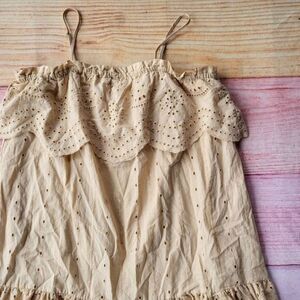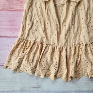 Moon River Cream Flounce Neckline Eyelet Mini Dress Size M Summer Boho