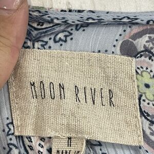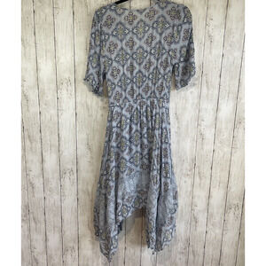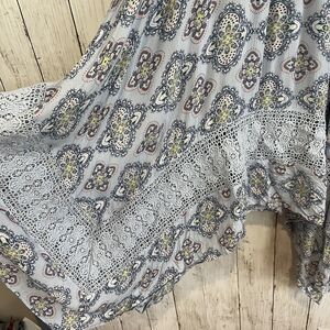 Moon River Dress Medium Blue Floral Print Lace Trim High Low Anthropologie