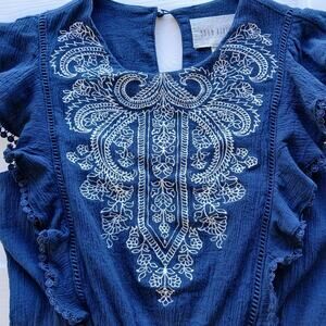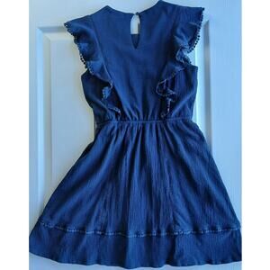 Moon River Embroidered Ruffles Mini Dress XS dark navy blue keyhole fully lined