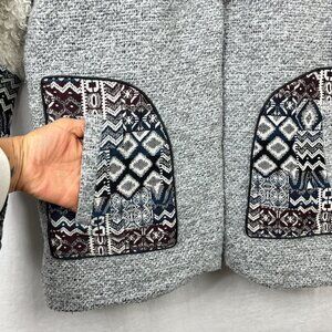 Moon River Faux Fur Tapestry Coat Womens S Oversized Southwestern Aztec Toggle