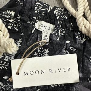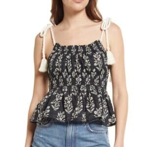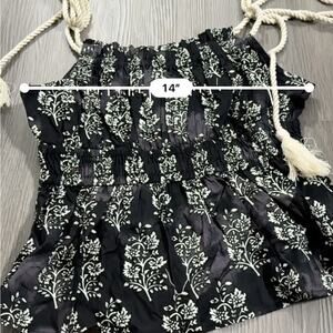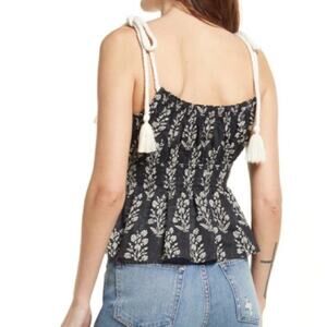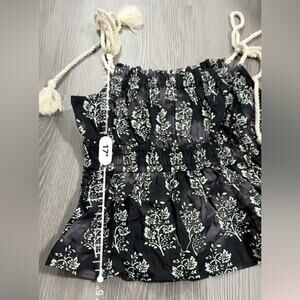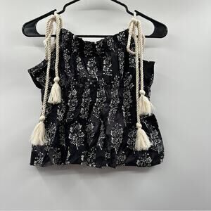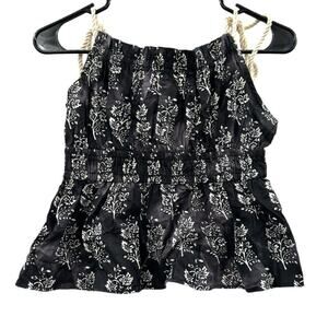 Moon River Floral Tie Strap Cotton Peplum Top in Black Multi Combo Size M
