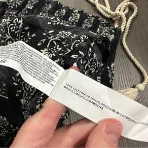 Build out your black-and-white collection with a cotton top tumbled with blooms and fastened with tassel-tie straps.
