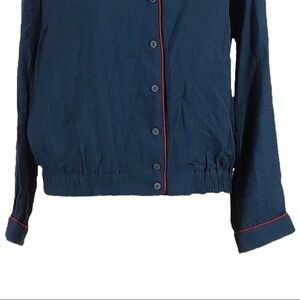 Moon River Navy Retro Notched Lapel Lightweight Bomber Jacket Size L NWT