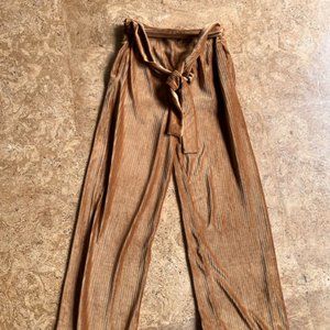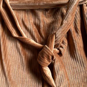 Moon River Anthropologie velour striped wide leg pants with tied belt.