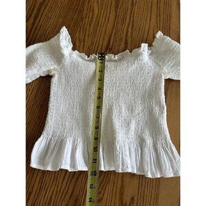 Moon River Peplum Style Smock Bustline White Crop Ruffle Neck Sz L Off Shoulder