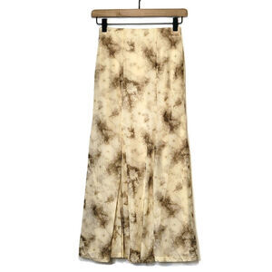 Moon River Pleated Midi Skirt Brown Cream Print Flowy Feminine Office Casual XS