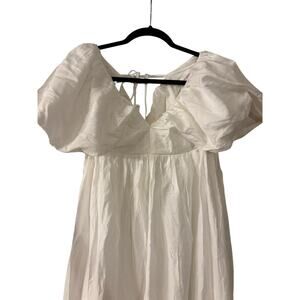Moon River Puff Sleeve Midi White Dress Size Medium NWT Sundress V Neck