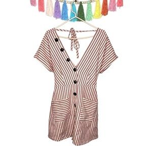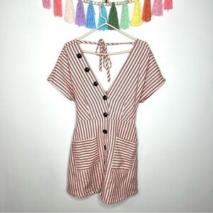 Title: Moon River Red and Cream Stripe Button Down Detail Mini Dress Size Medium