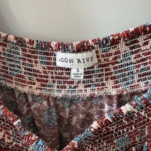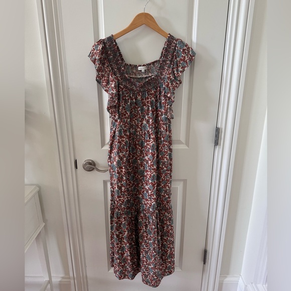 Fabric: Lightweight, non-stretch crepe, Smocked elastic square neckline, Flutter sleeves, Gathered empire waist and ruffle hem, Floral print, Pullover design, no closure