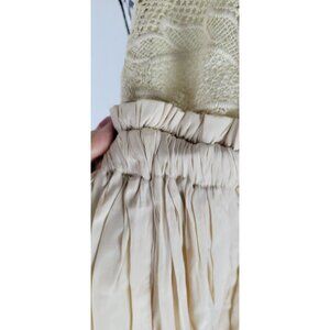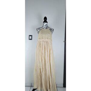 Moon River S Boho Halter Crochet Lace Linen Halter Neck Backless Dress Beige