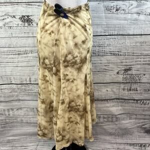 Moon River Skirt size Large Ivory Brown Mesh Sheer Midi Flared Stretch Modest