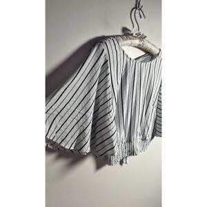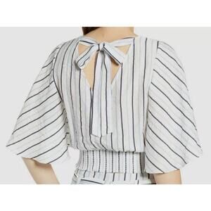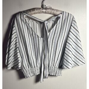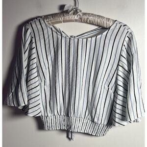 Moon River Striped Linen Flutter Sleeve Smocked Striped Crop Top Size Large