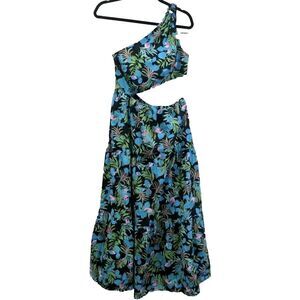 Moon River UO Womens Floral Dani Cut Out One Shoulder Maxi Dress Size Large Blue