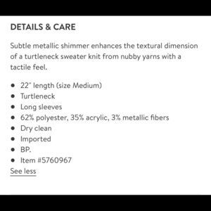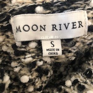 Moon River Metallic Turtleneck sweater. Soft chunky sweater with metallic detail. From Nordstrom. Great condition, with minor pilling. Size small. Chest measures approximately 21 inches flat across chest from armpit to armpit. Measures 20 inches in length. Sleeve length measures 21 inches. Black, tan, white, and metallic threads.