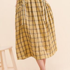 This sleeveless sundress by Moon River showcases a delightful smocked bodice and a square neckline, ideal for casual or resort occasions. The vibrant yellow and white colors enhance its breezy, comfortable fit, making it perfect for warm weather. Its light, airy fabric and classic design ensure it remains a timeless wardrobe staple.